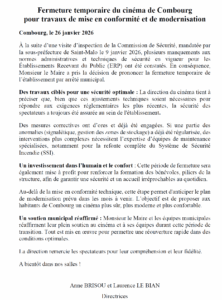 🎞️ Aucune date de réouverture n’est encore annoncée, mais tout est mis en œuvre pour que cet entracte soit le plus bref possible.